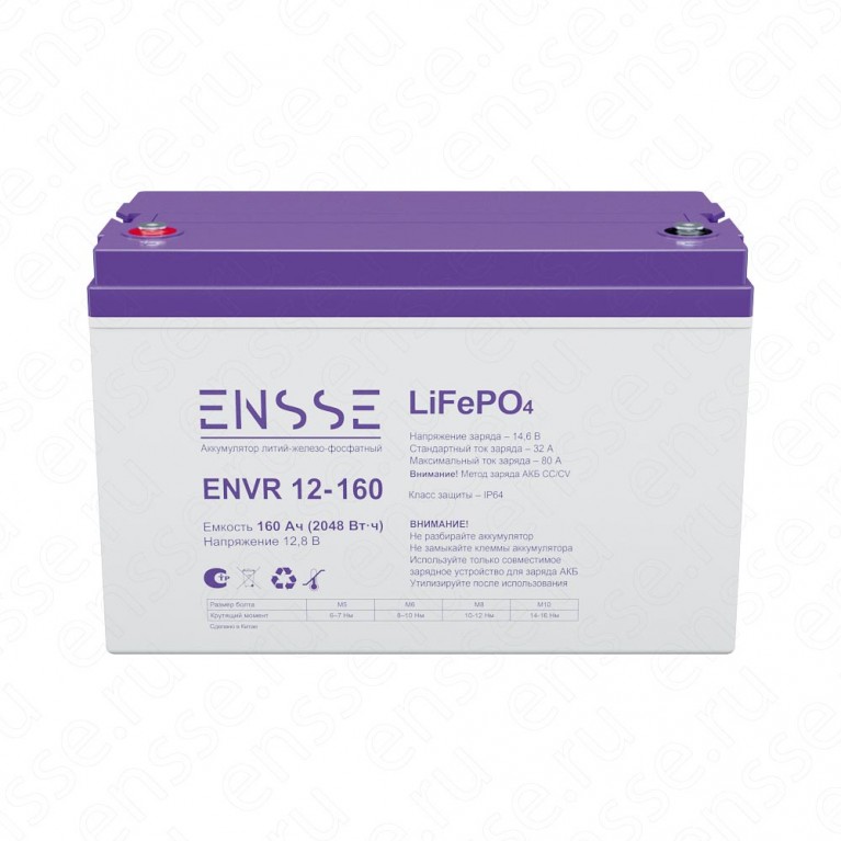 АКБ LiFePO4 ENSSE ENVR 12-160, 12 В 160 Ач (2048 В•ч)