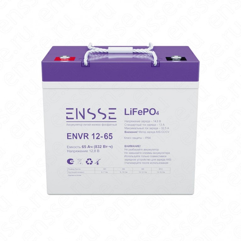 АКБ LiFePO4 ENSSE ENVR 12-65, 12 В 65 Ач (832 В•ч)