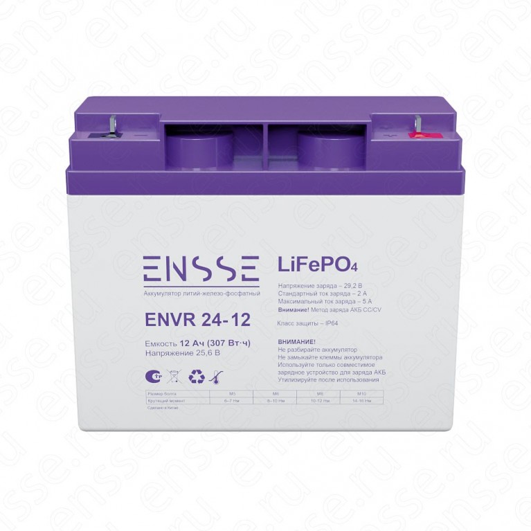 LiFePO4 аккумулятор ENSSE ENVR 24-12, 24 В 12 Ач (307 В•ч)
